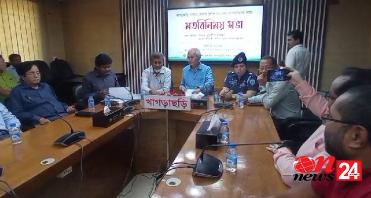 আজ শুক্রবার সকালে খাগড়াছড়ি জেলা প্রশাসক কার্যালয়ের সম্মেলন কক্ষে আয়োজিত সভায় সভাপতিত্ব করেন জেলা প্রশাসক মো: সহিদুজ্জামান। এসময় পুলিশ সুপার মুক্তা ধর, সাবেক অধ্যক্ষ ড. সুধীন কুমার চাকমা, বোধিসত্ব দেওয়ান, মথুরা বিকাশ ত্রিপুরা, সেফালিকা ত্রিপুরা, তরুণ কুমার ভট্টাচার্য প্রমূখ বক্তব্য রাখেন।