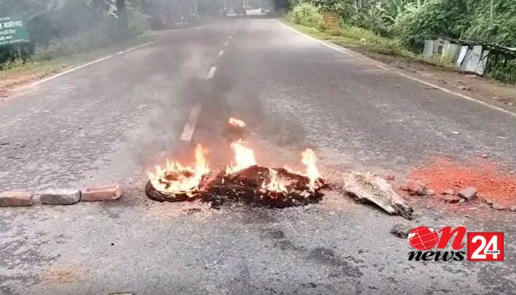 খাগড়াছড়ির তিন সড়কে আধাবেলা সড়ক অবরোধ চলছে অবরোধের সমর্থনে সড়কের বিভিন্ন স্থানে টায়ার ও গাছের গুড়ি পুড়িয়েছে অবরোধকারিরা