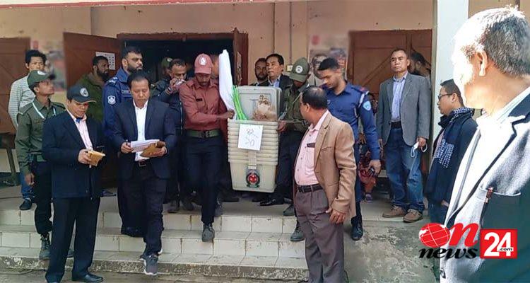 খাগড়াছড়ি বিভিন্ন ভোট কেন্দ্রে পাঠানো হচ্ছে নির্বাচনী সরঞ্জাম