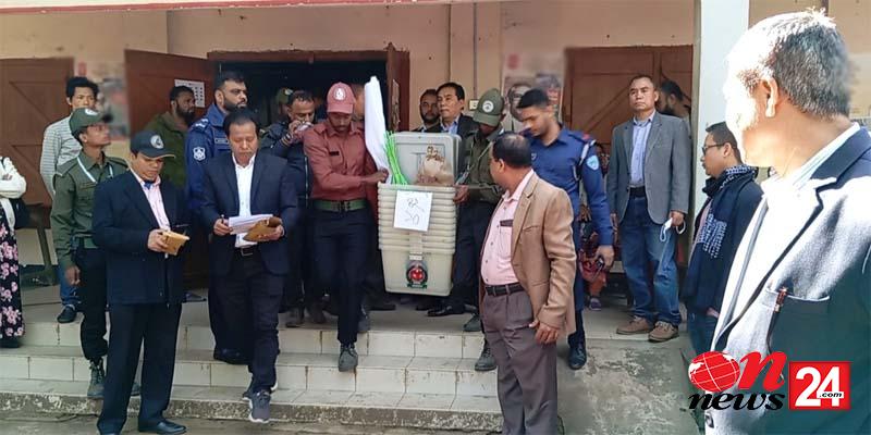 ৭ জানুয়ারী আসন্ন দ্বাদশ জাতীয় সংসদ নির্বাচনে খাগড়াছড়ি ২৯৮ নং আসনে বিভিন্ন ভোট কেন্দ্রে প্রিজাইডিং কর্মকর্তা এবং পোলিং অফিসারসহ পাঠানো হচ্ছে নির্বাচনী সরঞ্জাম।
