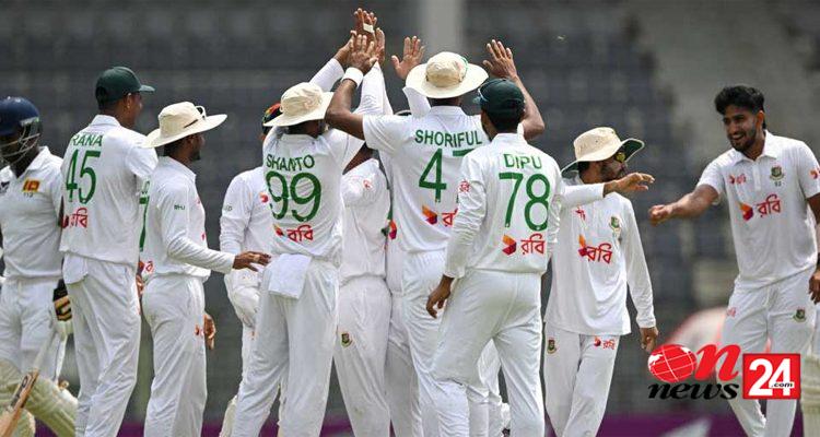শুক্রবার (২২ মার্চ) টস জিতে ফিল্ডিংয়ের সিদ্ধান্ত নেন টাইগার অধিনায়ক নাজমুল হোসেন শান্ত। ফিল্ডিংয়ে নেমে অধিনায়কের সিদ্ধান্তকে সঠিক বলে শুরুতেই প্রমাণ করেন পেসাররা। সবুজ উইকেটে নতুন বলে একের পর এক দুর্দান্ত ডেলিভারি দিতে থাকেন খালেদ-শরিফুলরা। টাইগার পেসারদের সুইংয়ে রীতিমত খাবি খায় লঙ্কানরা।