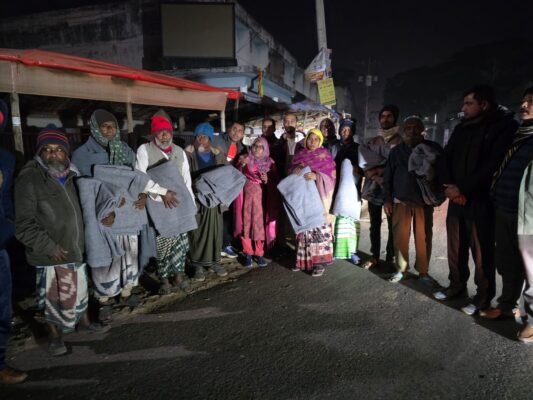 গভীর রাতে শীতার্ত মানুষের পাশে নিয়ামতপুর উপজেলা প্রশাসন