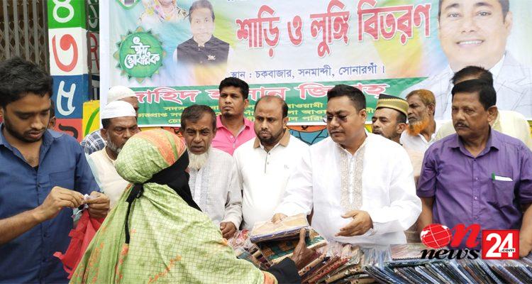নারায়ণগঞ্জ জেলার সোনারগাঁ উপজেলার সণমান্দী ইউনিয়নের চর ভুলুয়া সরকারি প্রাথমিক বিদ্যালয়ের মাঠে ও আলিপুর বাজারে সকাল ১০ টা থেকে ১২ টা পর্যন্ত বিভিন্ন শ্রেণী-পেশার অসহায় ও সুবিধা বঞ্চিত পুরুষ ও মহিলাদের মধ্যে প্রতিবছরের মতো এবারও ৪হাজার ঈদ বস্ত্র ও নগদ টাকা বিতরণ করেন সণমান্দী ইউনিয়ন পরিষদের সুযোগ্য চেয়ারম্যান জাহিদ হাসান জিন্নাহ।