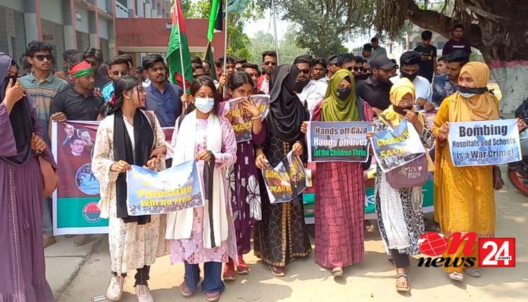 ফিলিস্তিনের গাজায় ইসরায়েলি বাহিনীর চলমান বর্বর হামলা ও গণহত্যার প্রতিবাদে সারাদেশের মত পঞ্চগড়ে মুখে কালো কাপড় বেঁধে প্রতিবাদ কর্মসূচি পালন করেছে বাংলাদেশ জাতীয়তাবাদী ছাত্রদল।