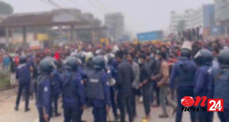 খবর পেয়ে শিল্প পুলিশ শ্রমিকদের মহাসড়ক থেকে সরে যাওয়ার জন্য অনুরোধ করে। কিন্তু শ্রমিকরা পুলিশের সঙ্গে বাকবিতণ্ডায় জড়িয়ে পড়ে। এসময় ইট পাটকেল ছুড়তে থাকলে পুলিশ লাঠিচার্জ ও টিয়ারশেল নিক্ষেপ করে শ্রমিকদের ছত্রভঙ্গ করে দেয়।