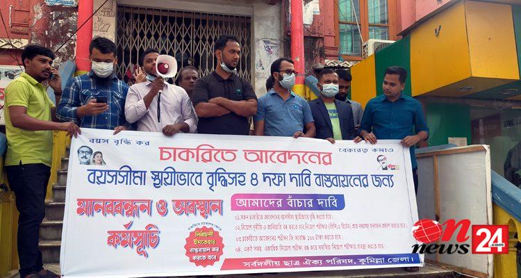 চাকরি পরীক্ষার ফি ১০০ টাকা করার দাবী কুমিল্লার শিক্ষার্থীদের