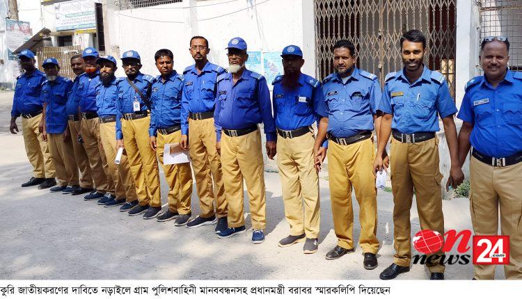 বক্তারা বলেন, স্থানীয় সরকার মন্ত্রণালয়ের অধীন ইউনিয়ন পরিষদের আইন-শৃঙ্খলা রক্ষাসহ ৭০ ধরণের কাজ করেন গ্রাম পুলিশবাহিনী। বর্তমানে দফাদারদের ৭হাজার টাকা ও মহল্লাদারদের সাড়ে ৬ হাজার টাকা বেতন দেয়া হয়। এই বেতনের অর্ধেক বেতন সরকারীভাবে এবং বাকি অর্ধেক ইউনিয়ন পরিষদ থেকে পরিশোধ করা হয়। ইউনিয়ন পরিষদ থেকে দেয়া বেতনের অংশ মাসের পর মাস বকেয়া থাকে। দ্রব্যমুল্যের উর্দ্ধগতির বাজারে সামান্য বেতনে পরিবার পরিজন নিয়ে মানবেতর জীবন যাপন করতে হচ্ছে। সংসার অভাব লেগেই থাকে। আমাদের ছেলেমেয়েদের ঠিকমত পড়ালেখা করাতে পারছি না। পরিবারের কেউ অসুস্থ হলে চিকিৎসা করাতে সমস্যা