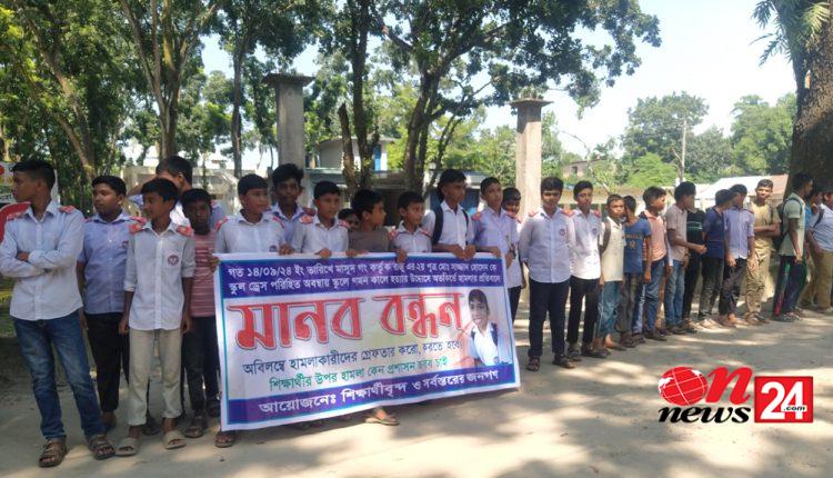 চিলমারীতে হামলাকারীদের গ্রেফতার দাবিতে মানববন্ধন