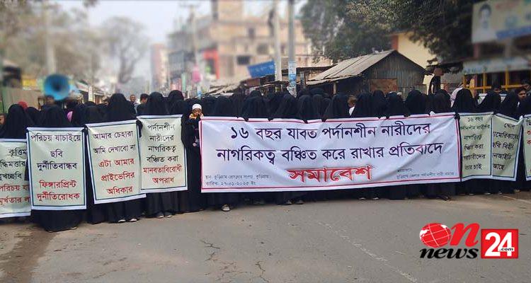চেহারার সাথে ছবি মিলিয়ে পরিচয় যাচাই নয়, ফিঙ্গার প্রিন্টের মাধ্যম পরিচয় যাচাইয়ের দাবিতে কুড়িগ্রামে সমাবেশ ও প্রধান নির্বাচন বরাবর স্মারকলিপি প্রদান করেছে পর্দাশীল নারীরা।