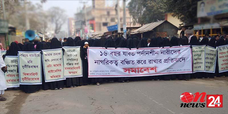 চেহারার সাথে ছবি মিলিয়ে পরিচয় যাচাই নয়, ফিঙ্গার প্রিন্টের মাধ্যম পরিচয় যাচাইয়ের দাবিতে কুড়িগ্রামে সমাবেশ ও প্রধান নির্বাচন বরাবর স্মারকলিপি প্রদান করেছে পর্দাশীল নারীরা।