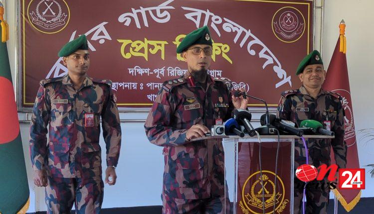 তিনি বলেন, চট্টগ্রাম রিজিয়নের অধীনস্থ ব্যাটালিয়নসমূহেরে দায়িত্বপূর্ণ ৫৪০ কিলিমিটার এলাকায় সীমান্ত পাহারা পাশাপাশি ৪শ ৭৭ বোতল মদ, ৪শ ২৯ পিস ইয়াবা, ৩শ ৮৮ কেজি গাঁজা, ২০০ বোতল বিয়ার এবং ৫২০ পিস বাংলা মদ তৈরির ট্যাবলেট জব্দ করা হয়। এছাড়া সীমান্তে টহল জোরদারের পাশাপাশি বিভিন্ন উপায়ে ৫শ ১ট গরু এবং ৩৬টি ছাগল জব্দ করা হয়। জব্দকৃত পশু স্থানীয় শুল্ক কার্যালয়ের নিলাম সরকারী কোষাগারে জমা দেওয়া হয়।