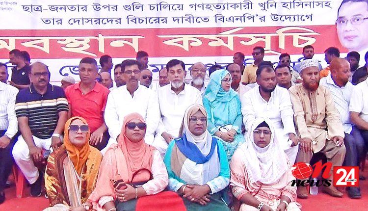 ছাত্র- জনতার উপর গুলি চালিয়ে গনহত্যাকারী খুনি হাসিনাসহ তার দোসরদের বিচারের দাবীতে অবস্থান কর্মসূচি করেছে কুমিল্লা দক্ষিণ জেলা ও মহানগর বিএনপি।