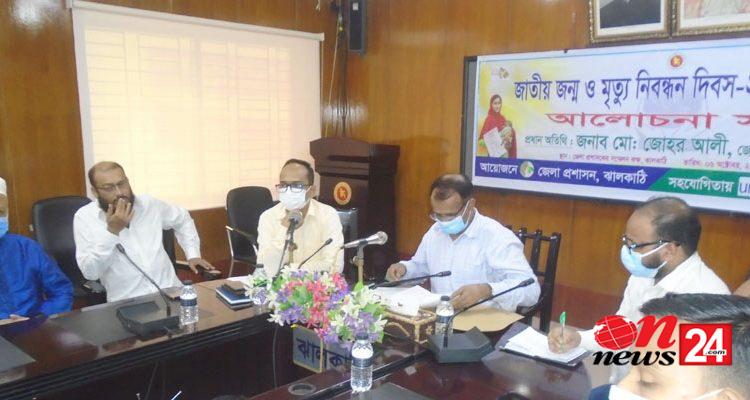 জন্ম ও মৃত্যু নিবন্ধন দিবস উপলক্ষে ঝালকাঠিতে আলোচনা সভা অনুষ্ঠিত হয়েছে। বুধবার সকাল সাড়ে ১০টায় জেলা প্রশাসকের সম্মেলন কক্ষে জেলা প্রশাসন এর আয়োজনে ও ইউনিসেফর এর সহযোগিতায় অনুষ্ঠিত আলোচনা সভায় প্রধান অতিথি ছিলেন ঝালকাঠি জেলা প্রশাসক মো: জোহর আলী।