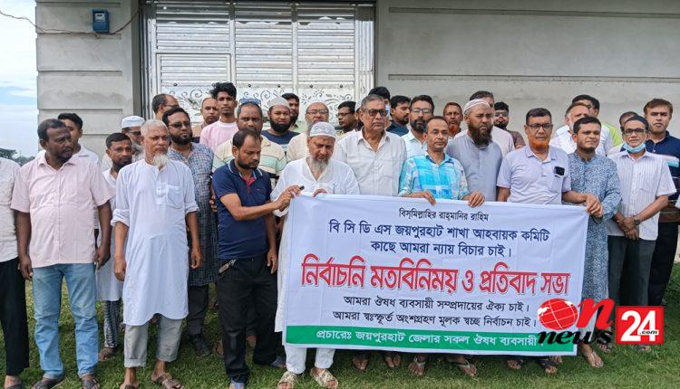 জয়পুরহাটে ঐষুধ ব্যবসায়ীদের নির্বাচনি মতবিনিময় ও প্রতিবাদ সভা অনুষ্ঠিত হয়েছে।