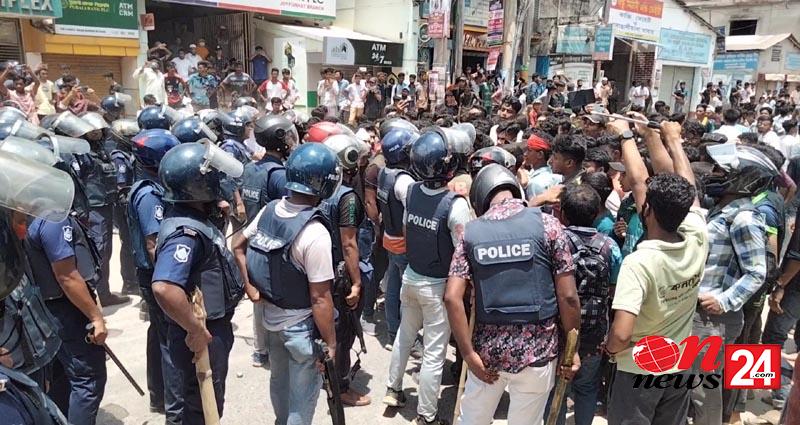সেখানে তারা অবস্থান নিলে পুলিশ তাতে বাধা দেয়। পরে পুলিশী বাধা উপেক্ষা করে আন্দোলনকারীরা অগ্রসর হতে থাকলে পুলিশের সাথে আন্দোলনকারীদের ধাওয়া-পাল্টা ধাওয়ার ঘটনা ঘটে।