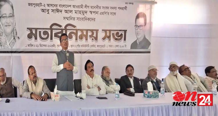 লাদেশ আওয়ামী লীগের সাংগঠনিক সম্পাদক ও জাতীয় সাংসদের হুইপ জয়পুরহাট ২ আসনের আওয়ামী লীগ মনোনীত সংসদ সদস্য পদপ্রার্থী আবু সাঈদ আল মাহমুদ স্বপন এমপি সাংবাদিকদের সাথে মতবিনিময় সভা অনুষ্ঠিত হয়েছে।
