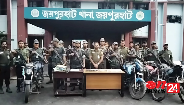 জয়পুরহাট আনসার কর্তৃক উদ্ধারকৃত অস্ত্র থানায় জমা ।