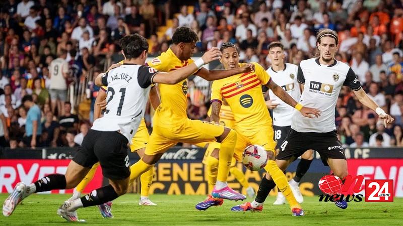 গতকাল (শনিবার) ভ্যালেন্সিয়ার মেস্তায়া স্টেডিয়ামে প্রতিপক্ষ দুর্গে গোল পেতে বেগ পেতে হয়েছে বার্সাকে। তবে ঠিকই বল দখল ও প্রেসিংয়ে তাদেরই দাপট ছিল। ফ্লিক বার্সা অধ্যায়ের প্রথম আনুষ্ঠানিক ম্যাচে নিজের সব তারকাকে পাননি। চোটের কারণে মাঠের বাইরে আছেন ইলকাই গুন্দোয়ান, গাভি, ফ্রেংকি ডি ইয়ং ও রোনাল্দ আরাউহো।
