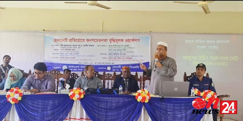 মৌলভীবাজারের জুড়ীতে জালনোট প্রতিরোধে জনসচেতনতা বৃদ্ধিমূলক ওয়ার্কশপ অনুষ্ঠিত হয়েছে। মঙ্গলবার (২৭ ফেব্রুয়ারি) সকালে উপজেলা অডিটোরিয়ামে বাংলাদেশ ব্যাংক সিলেট অফিসের আয়োজনে এবং সোনালী ব্যাংক জুড়ী শাখার সহযোগিতায় অনুষ্ঠিত এ ওয়ার্কশপে প্রধান অতিথির বক্তব্য রাখেন জুড়ী উপজেলা চেয়ারম্যান বীর মুক্তিযোদ্ধা এম.এ মোঈদ ফারুক।