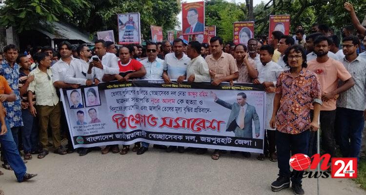 জয়পুরহাটে স্বেচ্ছাসেবক দলের বিক্ষোভ সমাবেশ