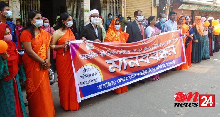 ঝালকাঠিতে আন্তর্জাতিক নারী নির্যাতন প্রতিরোধ পক্ষ উপলক্ষে মানববন্ধন