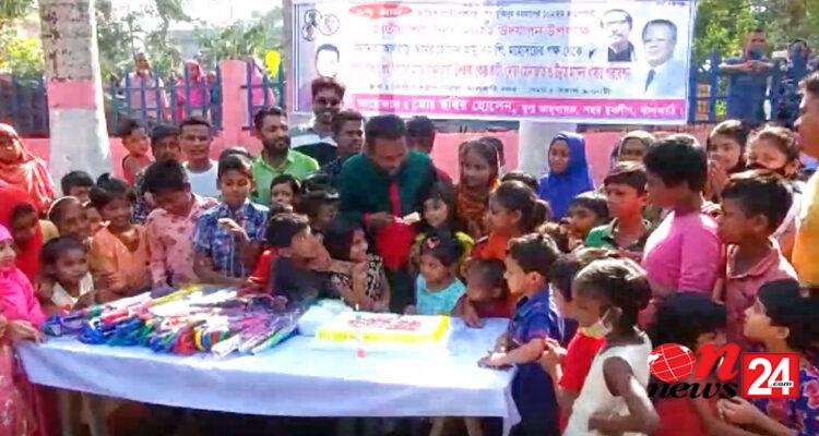 ঝালকাঠিতে বঙ্গবন্ধুর ১০২তম জন্মদিনে সুবিধা বঞ্চিত ১০২ শিশুকে ছাতা উপহার