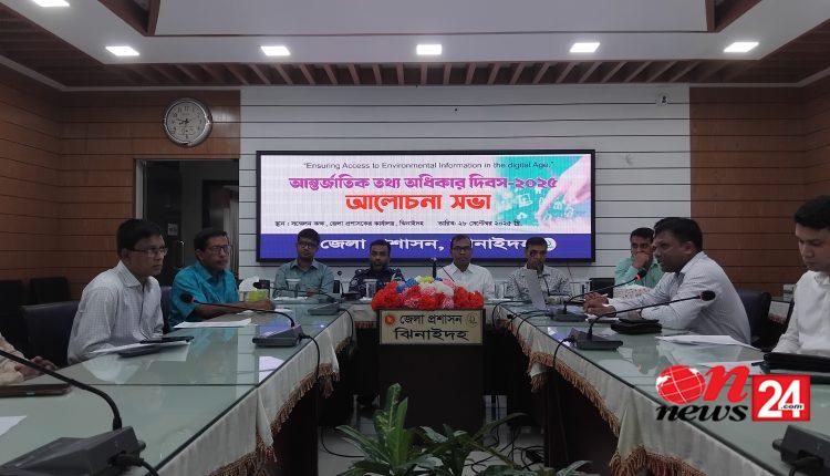 ঝিনাইদহে আন্তর্জাতিক তথ্য অধিকার দিবস পালিত হয়েছে। দিবসটি পালন উপলক্ষে (২৮ সেপ্টেম্বর) রবিবার সকালে জেলা প্রশাসকের সম্মেলন কক্ষে এক আলোচনা সভা অনুষ্ঠিত হয়। অতিরিক্ত জেলা প্রশাসক (সার্বিক) সাইফুর রহমানের সভাপতিত্বে অনুষ্ঠিত আলোচনা সভায় প্রধান অতিথি ছিলেন জেলা প্রশাসক মোহাম্মদ আবদুল আওয়াল। বিশেষ অতিথি ছিলেন স্থানীয় সরকার বিভাগের উপ-পরিচালক রথীন্দ্রনাথ রায়, অতিরিক্ত পুলিশ সুপার ইমরান জাকারিয়া। বক্তব্য রাখেন ঝিনাইদহ জেলা রিপোর্টার ইউনিটির সভাপতি এম এ কবীর এবং ইসলামী আন্দোলন বাংলাদেশের সেক্রেটারি।অনুষ্ঠানের মূল প্রতিপাদ্য ডিজিটাল প্লাটফর্মে উপস্থাপন করেন জেলা তথ্য অফিসার মোঃ আব্দুর রউফ। এর আগে একটি বর্ণাঢ্য রেলি বের করা হয়।