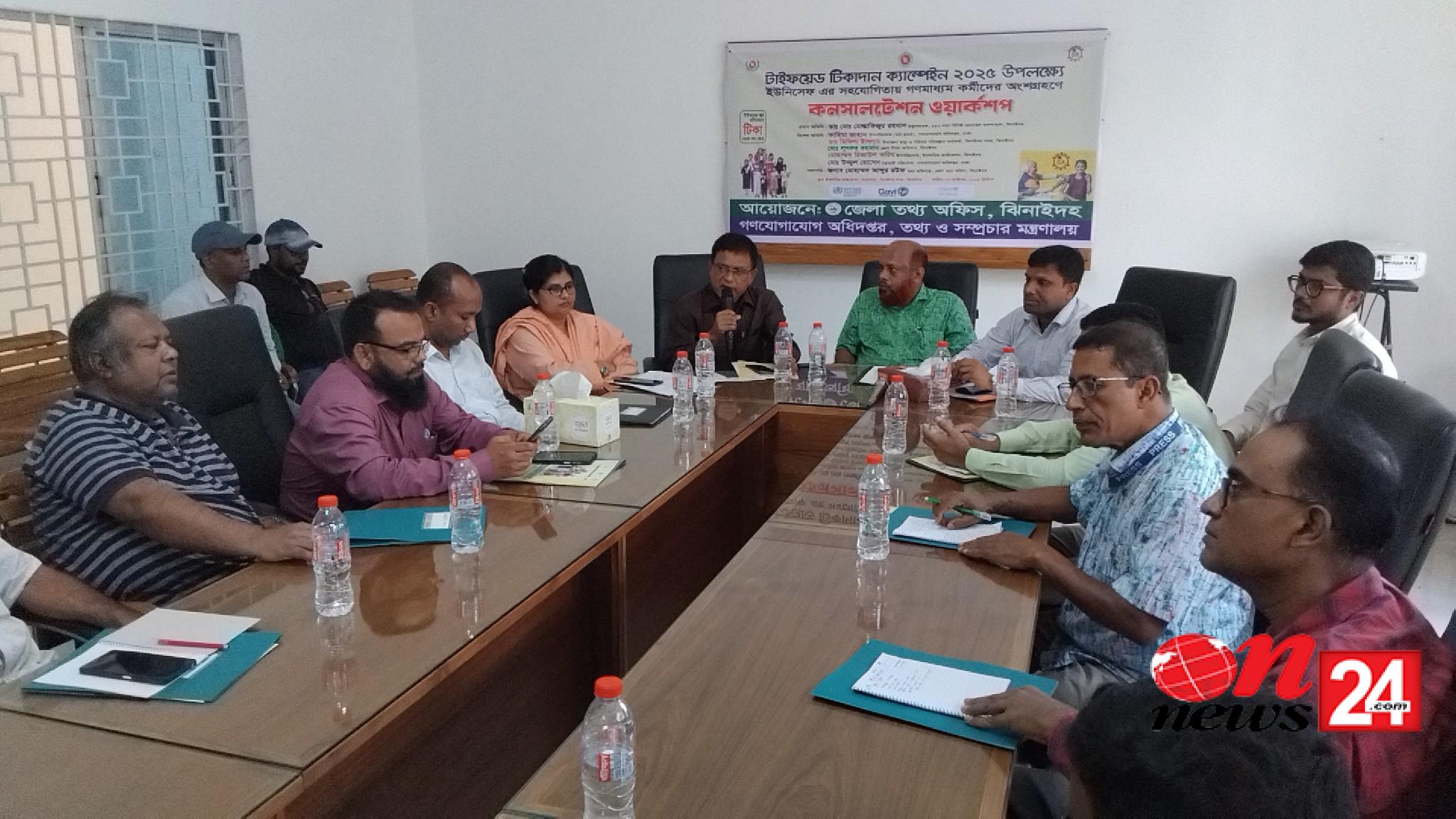 ইউনিসেফ,গণযোগাযোগ অধিদপ্তর,তথ্য ও সম্প্রচার মন্ত্রনালয়ের সহযোগিতায় কনসালটেশন ওয়ার্কশপের আয়োজন করে ঝিনাইদহ জেলা তথ্য অফিস।