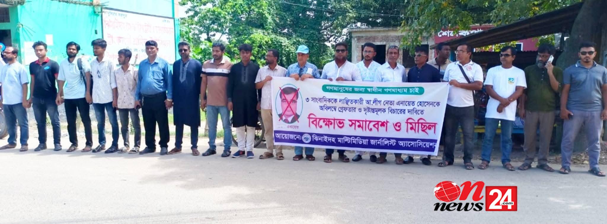 ঝিনাইদহে ৩ সাংবাদিককে লাঞ্ছিতের ঘটনায় মানববন্ধন