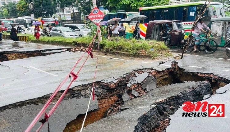 টানা বৃষ্টিতে সড়ক ফেটে চলে গেল নিচে