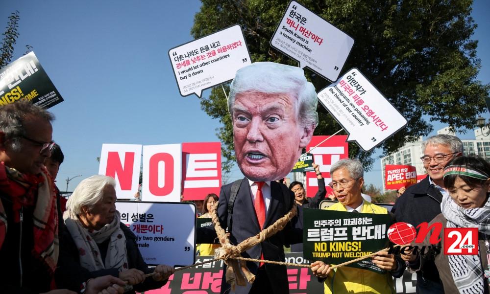 ট্রাম্প গিয়ংজুতে এপেক সম্মেলনে অংশ নেবেন। এরপর বৈঠকে বসবেন দক্ষিণ কোরিয়ার প্রেসিডেন্ট লি জে মিয়ং-এর সঙ্গে। বিক্ষোভকারীরা শহরের প্রধান সড়কে ট্রাম্পের মুখের একটি বড় কাগজের প্রতিকৃতি টাঙিয়ে লাল কার্ড নেড়ে সতর্কবার্তা দেন, ‘এটি চূড়ান্ত বার্তা, এশিয়া–প্রশান্ত মহাসাগর অঞ্চলকে একা ছেড়ে দিন।’