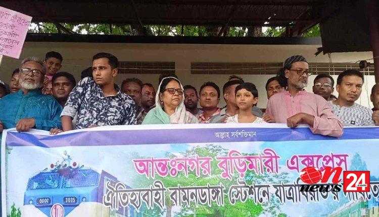 লালমনিরহাট থেকে ঢাকা রুটে চালু হওয়া বুড়িমারী এক্সপ্রেস ট্রেনটি গাইবান্ধার সুন্দরগঞ্জের বামনডাঙ্গা রেলওয়ে স্টেশনে যাত্রা বিরতির দাবিতে মানববন্ধন ও গণ-অবস্থান অনুষ্ঠিত হয়েছে।