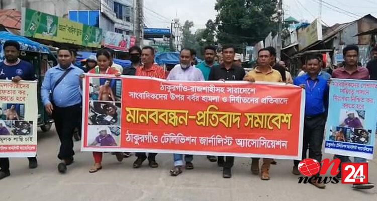 ঠাকুরগাঁওয়ে সাংবাদিকের উপর হামলার প্রতিবাদে বিক্ষোভ ও মানববন্ধন