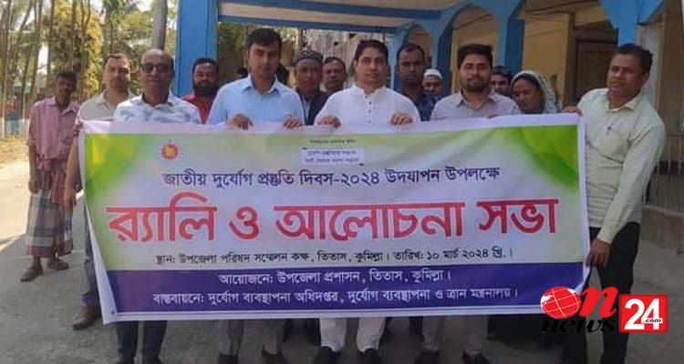 কুমিল্লার তিতাসে জাতীয় দুর্যোগ প্রস্তুতি দিবস উদযাপন উপলক্ষ্যে র্যালী ও আলোচনা সভা অনুষ্ঠিত হয়েছে।