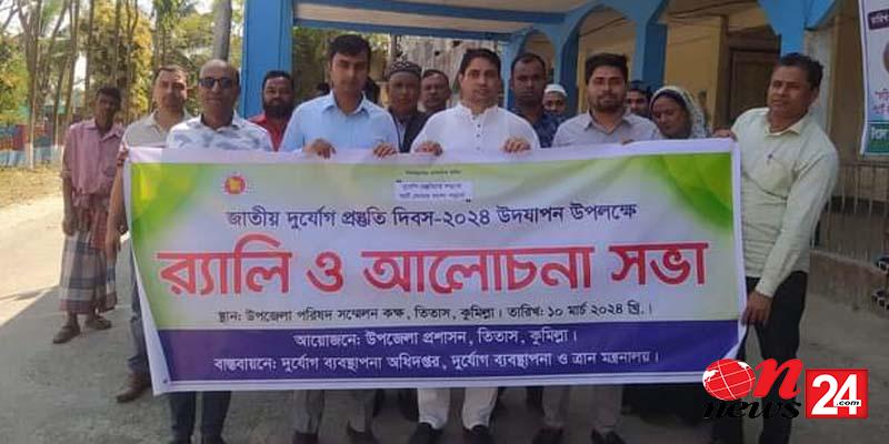 কুমিল্লার তিতাসে জাতীয় দুর্যোগ প্রস্তুতি দিবস উদযাপন উপলক্ষ্যে র্যালী ও আলোচনা সভা অনুষ্ঠিত হয়েছে।