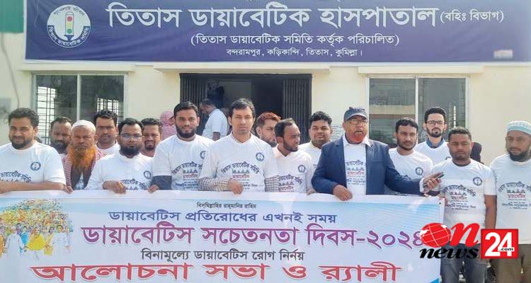 কুমিল্লার তিতাসে ডায়াবেটিস সচেতনতা দিবস উদযাপন উপলক্ষ্যে আলোচনা সভা ও র্যালী অনুষ্ঠিত হয়েছে। “ডায়াবেটিস প্রতিরোধের এখনই সময়” এই স্লোগানে গতকাল বুধবার সকালে তিতাস ডায়াবেটিক সমিতির আয়োজনে বিনামূল্যে ডায়াবেটিস রোগ নির্ণয়, আলোচনা সভা ও র্যালী এবং আদর্শ ডায়াবেটিক রোগীদেরকে ক্রেস্ট প্রদান করা হয়।