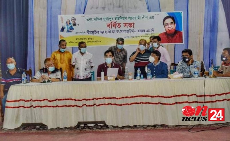 কুমিল্লা টাউন হল মিলনায়তনে আয়োজিত দূর্গাপুর (দক্ষিন) ইউনিয়ন ইউনিয়ন আওয়ামী লীগের বর্ধিত সভায় প্রধান অতিথি ছিলেন কুমিল্লা মহানগর আওয়ামী লীগের সভাপতি বীর মুক্তিযোদ্ধা আ ক ম বাহাউদ্দীন বাহার এমপি। আদর্শ সদর উপজেলা আওয়ামী লীগের সভাপতি অধ্যাপক কাজী আবুল বাসারের সভাপতিত্বে সভায় অতিথি ছিলেন মহানগর আওয়ামী লীগের সাধারন সম্পাদক আরফানুল হক রিফাত, যুগ্ম সাধারন সম্পাদক আবিদুর রহমান জাহাঙ্গীর, আদর্শ সদর উপজেলা চেয়ারম্যান এড.মো.আমিনুল ইসলাম টুটুল, মহানগর শ্রমিক লীগের আহবায়ক এম এ কাইয়ুম, মহানগর যুবলীগের আহবায়ক ও জেলা পরিষদের প্যানেল চেয়ারম্যান আবদুল্লাহ আল মাহমুদ সহিদ, আদর্শ সদর উপজেলা আওয়ামী লীগের সাধারন সম্পাদক তারিকুর রহমান জুয়েল,মহানগর স্বেচ্ছাসেবক লীগের সাধারন সম্পাদক সাদেকুর রহমান পিয়াস,ছাত্রলীগের আহবায়ক আবদুল আজিজ শিয়ানুক প্রমুখ।