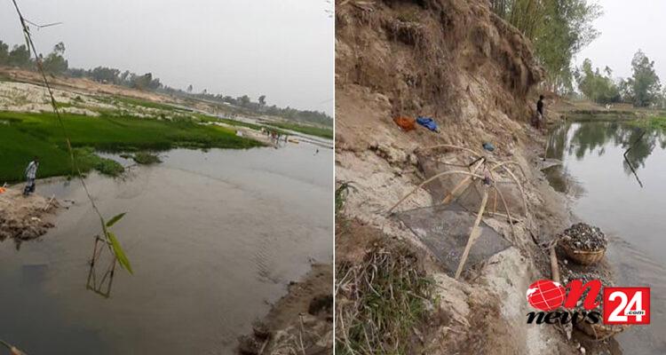তেঁতুলিয়ায় করতোয়ার বাধ ভেঙ্গে পাথর উত্তোলন, হুমকির মুখে ঈদগাহ!