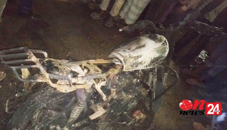 তেঁতুলিয়া নির্বাচনী পথসভার হামলায় মোটরসাইকেলে অগ্নিসংযোগ