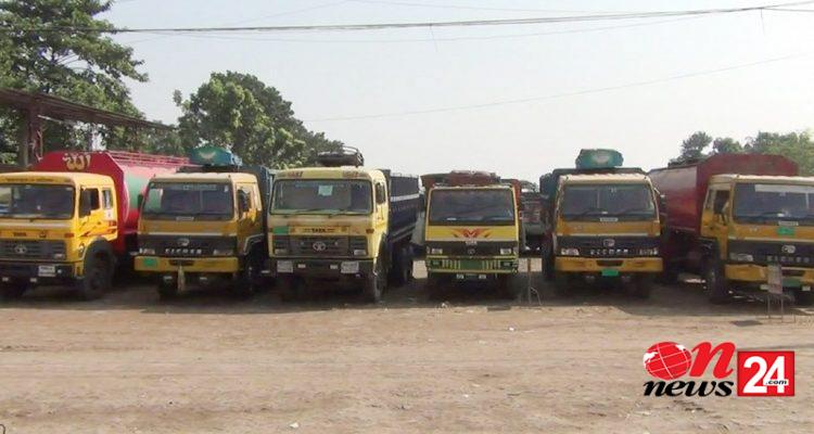 তেলের মুল্য বৃদ্ধির প্রতিবাদে হিলিতে পরিবহন ধর্মঘট চলছে বাস ও ট্রাক চলাচল বন্ধ