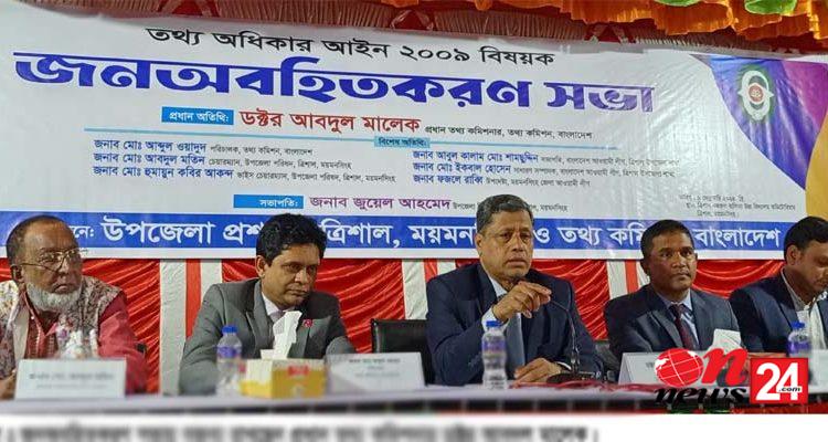 ত্রিশাল উপজেলা প্রশাসন ও তথ্য কমিশনের যৌথ আয়োজনে জনঅবহিতকরণ সভায় প্রধান অতিথির বক্তব্য রাখেন বাংলাদেশ তথ্য কমিশনের প্রধান তথ্য কমিশনার ডক্টর আবদুল মালেক।