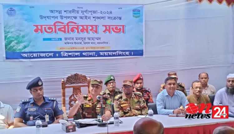 ত্রিশালে শারদীয় দুর্গাপূজা উদযাপন উপলক্ষে আইনশৃঙ্খলা সংক্রান্ত মতবিনিময় সভা