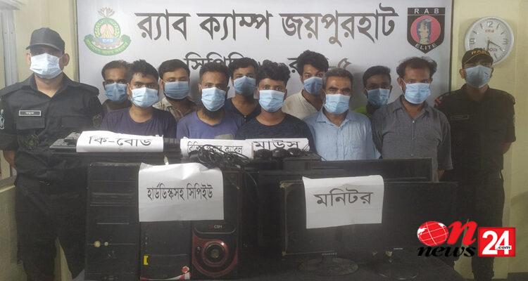 র‍্যাব-৫, অভিযানে চালিয়ে জয়পুরহাটের আক্কেলপুর এলাকা থেকে ১১ টি সিপিইউ, ১৪ টি হার্ড ডিস্ক, ১১ টি মনিটরসহ দশজন পর্নোগ্রাফি ভিডিও সরবরাহকারীকে গ্রেপ্তার করেছে। সোমবার সন্ধ্যায় (২৫ এপ্রিল) উপজেলার তিলকপুর রেলওয়ে স্টেশন বাজার থেকে তাদেরকে গ্রেফতার করা হয়।
