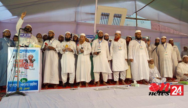 বৃহস্পতিবার বিকেলে ফেনীর কেন্দ্রীয় শহীদ মিনার চত্বরে খেলাফত মজলিস ফেনী জেলা শাখার উদ্যোগে আয়োজিত এক গনসমাবেশে প্রধান অতিথির বক্তব্যে তিনি এসব কথা বলেন। সংগঠনের জেলা সভাপতি মাওলানা জসিম উদ্দিনের সভাপতিত্বে ও জেলা সাধারণ সম্পাদক ক্বারী আবু বক্কর ছিদ্দিকের পরিচালনায় উক্ত সমাবেশে বিশেষ অতিথি ছিলেন, কেন্দ্রীয় নায়েবে আমীর মাওলানা আফজালুর রহমান, কেন্দ্রীয় মহাসচিব মাওলানা জালাল উদ্দিন আহমদ, যুগ্ম মহাসচিব মাওলানা তোফাজ্জল হোসাইন, সাংগঠনিক সম্পাদক মাওলানা এনামুল হক মুসা,অপর সাংগঠনিক সম্পাদক মাওলানা আবু সাঈদ নোমান ও কেন্দ্রীয় প্রচার সম্পাদক মাওলানা হারুনুর রশিদ ভূঁইয়া।এতে আরো বক্তব্য রাখেন, জেলা জামায়াতের আমীর মাওলানা আবদুল হান্নান,জেলা হেফাজতে ইসলামের আমীর ওমর ফারুক,জেলা বিএনপির যুগ্ম আহ্বায়ক এয়াকুব নবী, জেলা জামায়াতের সেক্রেটারী মাওলানা আবদুর রহিম,জলা ইসলামী আন্দোলন সেক্রেটারী মাওলানা একরামুল হক ভূঁইয়া,জেলা খেলাফত মজলিসের সহ-সভাপতি মাওলানা হাকিম আমীর হোসাইন, সহ-সভাপতি মাওলানা নাজমুল আলম সহ বিভিন্ন উপজেলা সভাপতিগন। সন্চালনায় ছিলেন জেলা সেক্রেটারী মাওলানা ক্বারী আবু বকর ছিদ্দিক, ছাত্র মজলিসের কেন্দ্রীয় সভাপতি আবদুল আজিজ ও আন্তর্জাতিক কেরাত সম্মেলন সংস্থার সভাপতি মাওলানা আবদুল ফাত্তাহ।