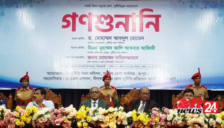 রবিবার (২০ এপ্রিল) সকাল ১০টা থেকে বিকাল ৪টা পর্যন্ত নীলফামারী জেলা শিল্পকলা একাডেমি মিলনায়তনে আয়োজিত গণশুনানীতে প্রধান অতিথির বক্তব্যে তিনি এসব কথা বলেন। রংপুর দুদকের সমন্বিত জেলা কার্যালয়ের আয়োজনে এবং জেলা প্রশাসনের সহযোগিতায় এ শুনানী অনুষ্ঠিত হয়। এবারের প্রতিপাদ্য ছিল—“সবাই মিলে গড়বো দেশ, দুর্নীতিমুক্ত বাংলাদেশ।”