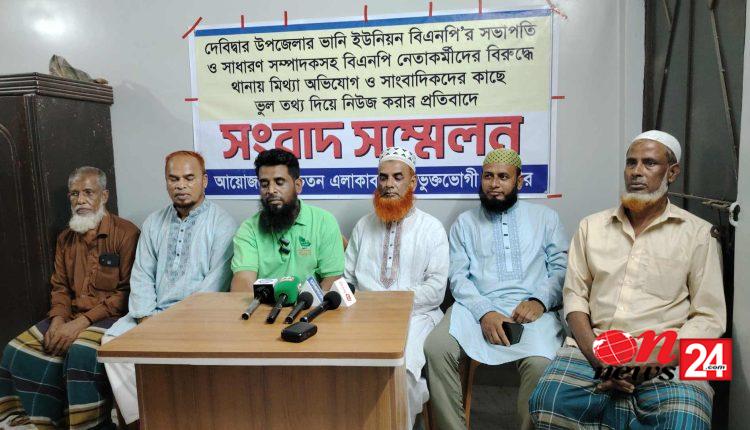 কুমিল্লার দেবিদ্বার উপজেলার ভানী ইউনিয়নের সূর্যপুরে সামাজিক সালিশের ঘটনাকে ভিন্নভাবে প্রচার করে ইউনিয়ন বিএনপির নেতাকর্মীদের উপর দায় চাপানোর প্রতিবাদে সংবাদ সম্মেলন করেছেন ইউনিয়ন বিএনপির নেতাকর্মীরা। এ বিষয়ে পাওনাদার প্রবাসী আলী আশ্রাফ অভিযোগ করে বলেন, দেবিদ্বার উপজেলার ভানি ইউনিয়নের সূর্যপুর গ্রামের মৃত আয়েব আলীর মেয়ে হাসিনা বেগম আমাকে ১শতক রাস্তার জায়গা লিখে দিবেন বলেন আড়াই লক্ষ টাকা নেন। কিন্তু হাসিনা বেগম গত ৬ বছর ধরে জায়গার দলিল না দিয়ে প্রতারণা করে আসছেন। পরে আমি জায়গা না পেয়ে টাকা ফেরত চাই। এ নিয়ে গ্রামে একাধিক সালিস হয়। ওই সালিসে হাসিনা বেগম টাকা ফেরত দিয়ে দিবেন বলে স্বীকার করেছেন। যার লিখিত ডুকোমেন্টসও রয়েছে। সম্প্রতি আমার স্ত্রী অসুস্থ হয়ে হাসপাতালে ভর্তি হওয়ায় তার চিকিৎসার খরচ মেটাতে গ্রামের কয়েকজন গণ্যমান্য ব্যক্তিবর্গ নিয়ে হাসিনা বেগমের কাছে পাওনা ফেরত চাইতে গেলে তিনি লোকজন নিয়ে যাওয়ায় ক্ষিপ্ত হয়ে অকথ্য ভাষায় গালিগালাজ করতে থাকেন। তাকে প্রথমে গালিগালাজ করতে নিষেধ করা হয়। পরে সে গ্রামের গন্যমান্য ব্যক্তিদের সুদখোর-ঘুষখোর বলে গালাগালি শুরু করে করলে হাসিনা বেগমের প্রতিবেশী চাচা তাকে একটি ধাক্কা দিয়ে সরিয়ে দেন। এ ঘটনা দূর থেকে হাসিনা বেগমের মেয়ে ভিডিও করে ফেসবুকে ছড়িয়ে দেয়। পরবর্তীতে এ ঘটনায় থানা মামলাও করা হয়। গ্রামের একটি চক্র ওই নারীকে ব্যবহার করে আমাদের বিরুদ্ধে মামলা করিয়েছে। তাকে কোন রকম মারধর বা শ্লীতাহানীর কোন ঘটনা ঘটেনি। এখানে গ্রামের অনেক মানুষ উপস্থিত ছিলেন।