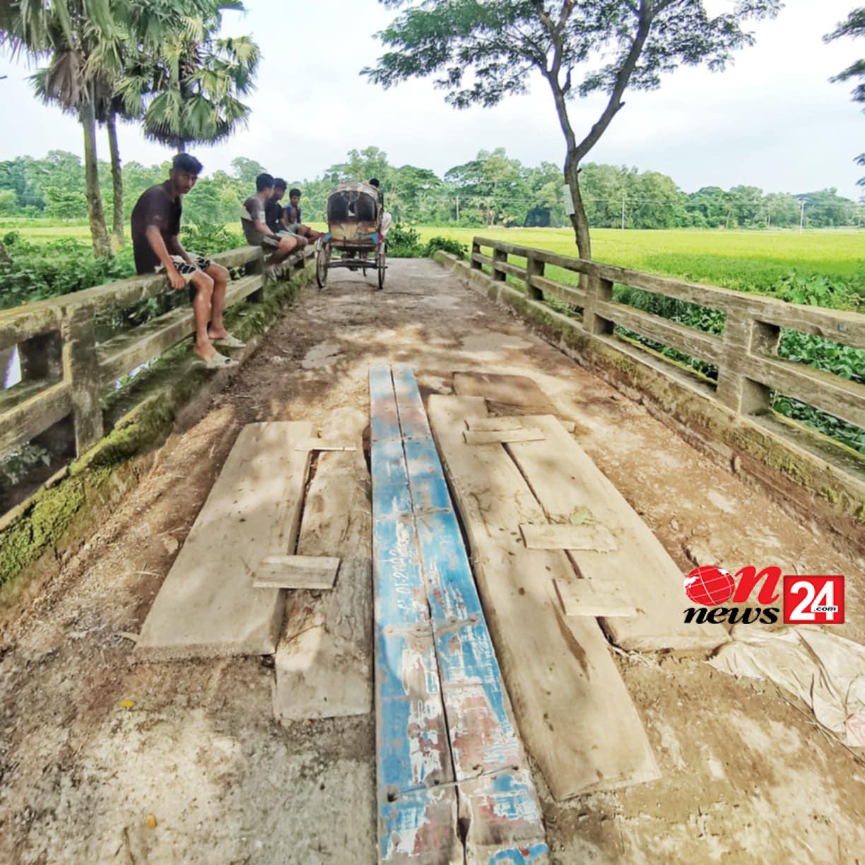 সেতুর মাঝ বরাবর ভেঙ্গে বেরিয়ে পড়েছে লোহার রড। হয়েছে বড় আকারের গর্ত। চলাচল করতে ভাঙাস্থানে বিছিয়ে রেখেছে কাঠের পাটাতন। খসে পড়ছে সেতুর নিচের অংশের পলেস্তরা। ভারী কোন যানবাহন উঠলেই সেতুটি কেঁপে ওঠে। সরজমিনে গিয়ে এসব চিত্র দেখা গেছে।