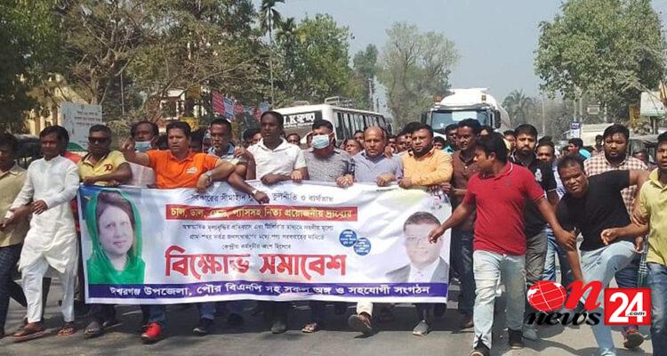 দ্রব্যমূল্য বৃদ্ধির প্রদিবাদে ঈশ্বরগঞ্জে বিএনপি’র বিক্ষোভ মিছিল সমাবেশ