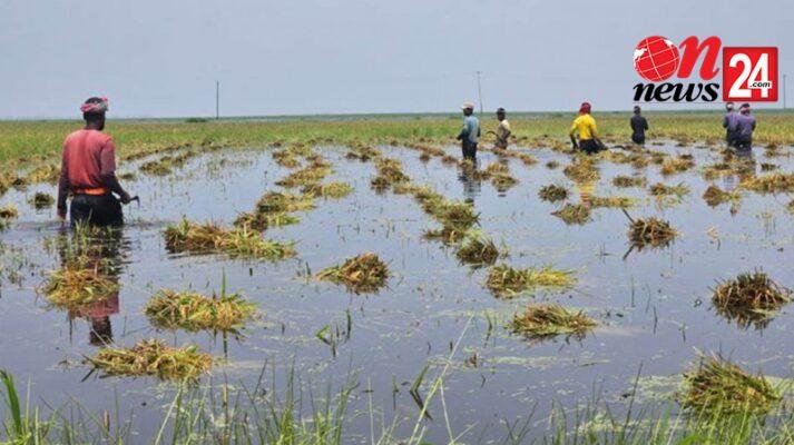 সোমবার রাতে অতিবৃষ্টির কারণে আগে থেকে কাটা ও মাড়াই করা কয়েকশ হেক্টর জমির ধান শুকানোর জন্য মাঠে রাখা ছিল। অতিবৃষ্টিতে পানি জমে সেসব ধান তলিয়ে গেছে।