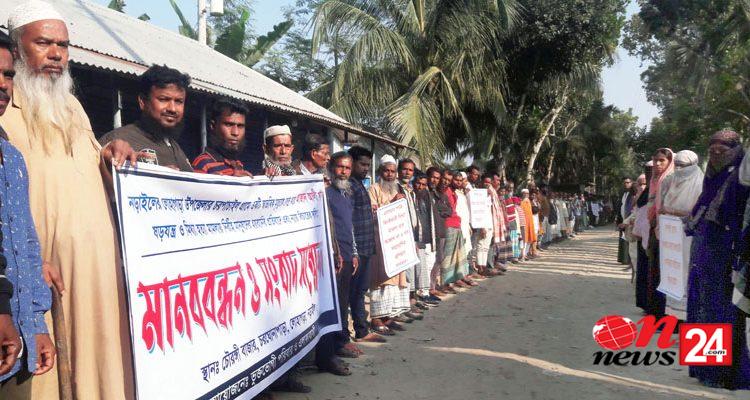 নড়াইলের লোহাগড়ায় ষড়যন্ত্রমূলক হত্যা মামলায় দায়েরের প্রতিবাদে মানববন্ধন